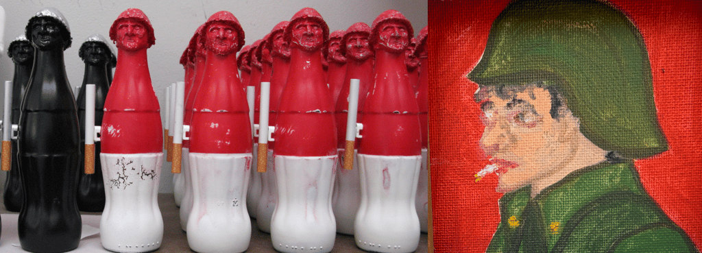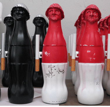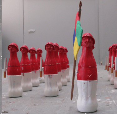 While Morandi depicted the bottles he saw through his filters and insight, he painted the objects relatively as they were. I was taking found objects with established recognition and making an analogy of a reality that might exist in the metaphysical world—an undertone that we all seem to know and feel about ourselves as consumers and collaborators within the global system of influence, a silent 'war campaign' through which I offered the iconic soldier Giovanni CocaCola.